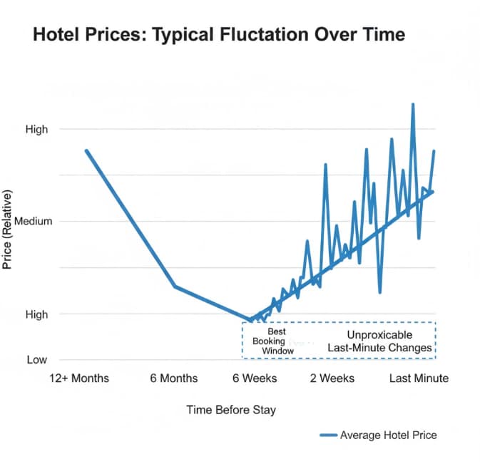 The sweet spot is usually middle-window booking, when hotels adjust rates based on real bookings instead of predictions.