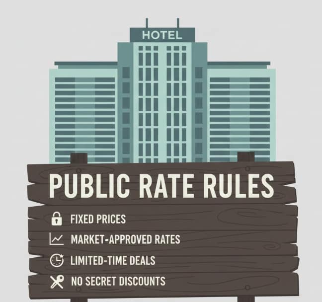 Hotels follow strict pricing rules. Public sites (Expedia, Booking, etc.) can only display rates approved for the general market.