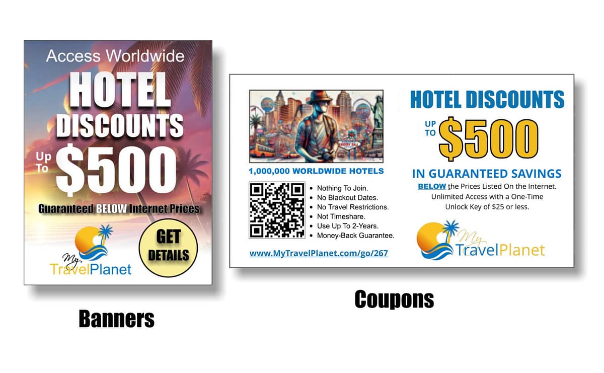 Partners receive free ready-made banner ads (10 sizes) that can be placed on their website, added to social media, or displayed anywhere they choose. These banners are designed to capture attention and link directly to the savings offer. Partners can also print coupons ($250/10,000) that can be distributed directly to their customers at the point of sale. A perfect solution to generate greater profits from your same customer without selling anything more or raising prices.
